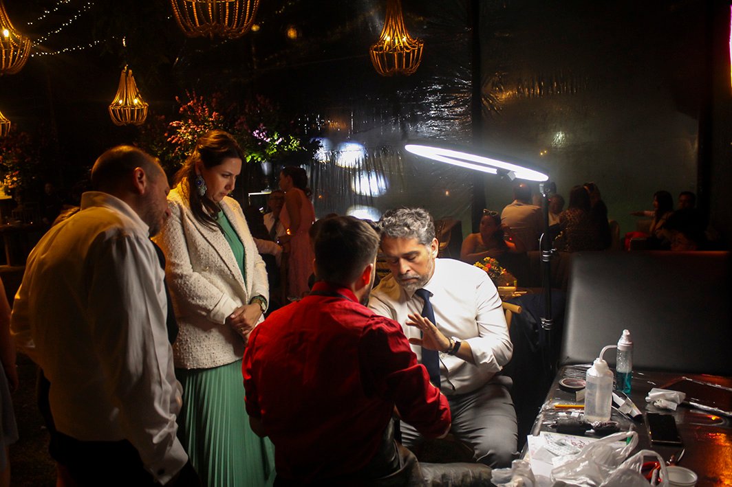 Tuvimos a Craneo de Tinta en nuestro matri y todo resultó tal cual lo imaginamos… Juan muy profesional, puntual, todo el proceso de preparación fue sin inconvenientes. Todos nuestros invitados que lograron tatuarse (muchos quedaron fuera!!) estaban encantados con la experiencia. 100% recomendable, fue uno de los recuerdos mas memorables de nuestro evento y que nunca olvidarán!